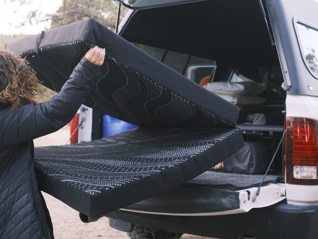 Handmade in the USA, the Nokhu Basin is a premium 4-inch bi-fold car camping mattress built for adventure, comfort, and durability. Each Basin is crafted to order so please allow 7-10 business days to process. The Basin uses high-quality layered foam and weather-ready materials — delivering the perfect balance of softness, support, and longevity. You’ll never feel the ground underneath you, just a stable, comfortable surface that makes your vehicle feel like home.